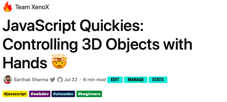 Well, that's it. You can now control the 3D object with your hand. I have made the code public on Github so go check it out. Clone it, run it, and have fun with it.